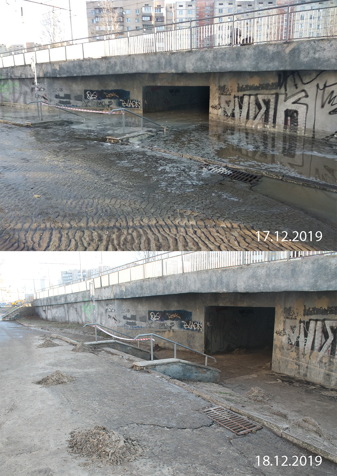 Сьогодні вже повноцінно функціонує підземний перехід на вул.Героїв Дніпра 9-13, де вчора прорвало магістральний трубопровід.